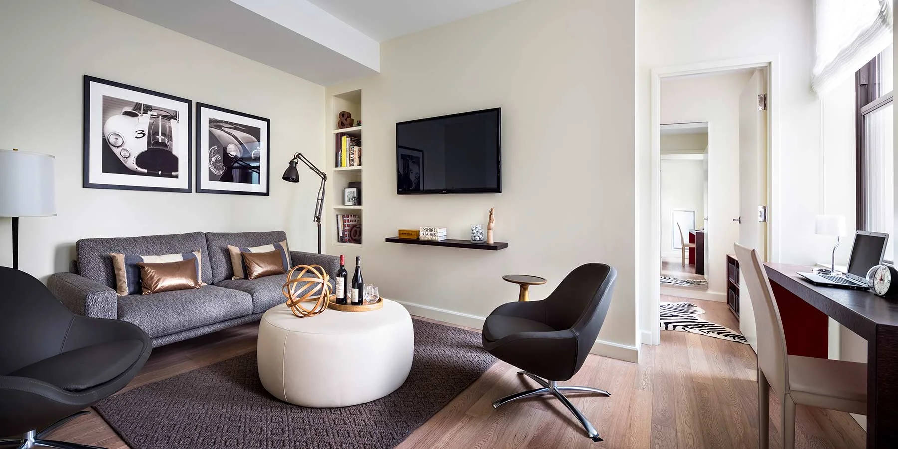 Environmentally conscious construction, access to green spaces, yoga rooms and co-working lounges. and fitness centers by Equinox.