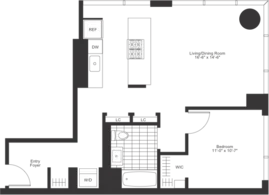 1 bedroom corner unit floor plan