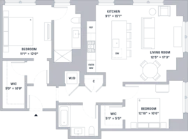 2 Bedrooms 2 Baths floorplan