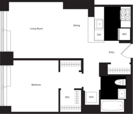Lovely 1 Bedroom, 1 Bath with northern exposure and city and river views, floor-to-ceiling windows, a walk-in closet, a gourmet pass-through kitchen, and an in-home washer/dryer.