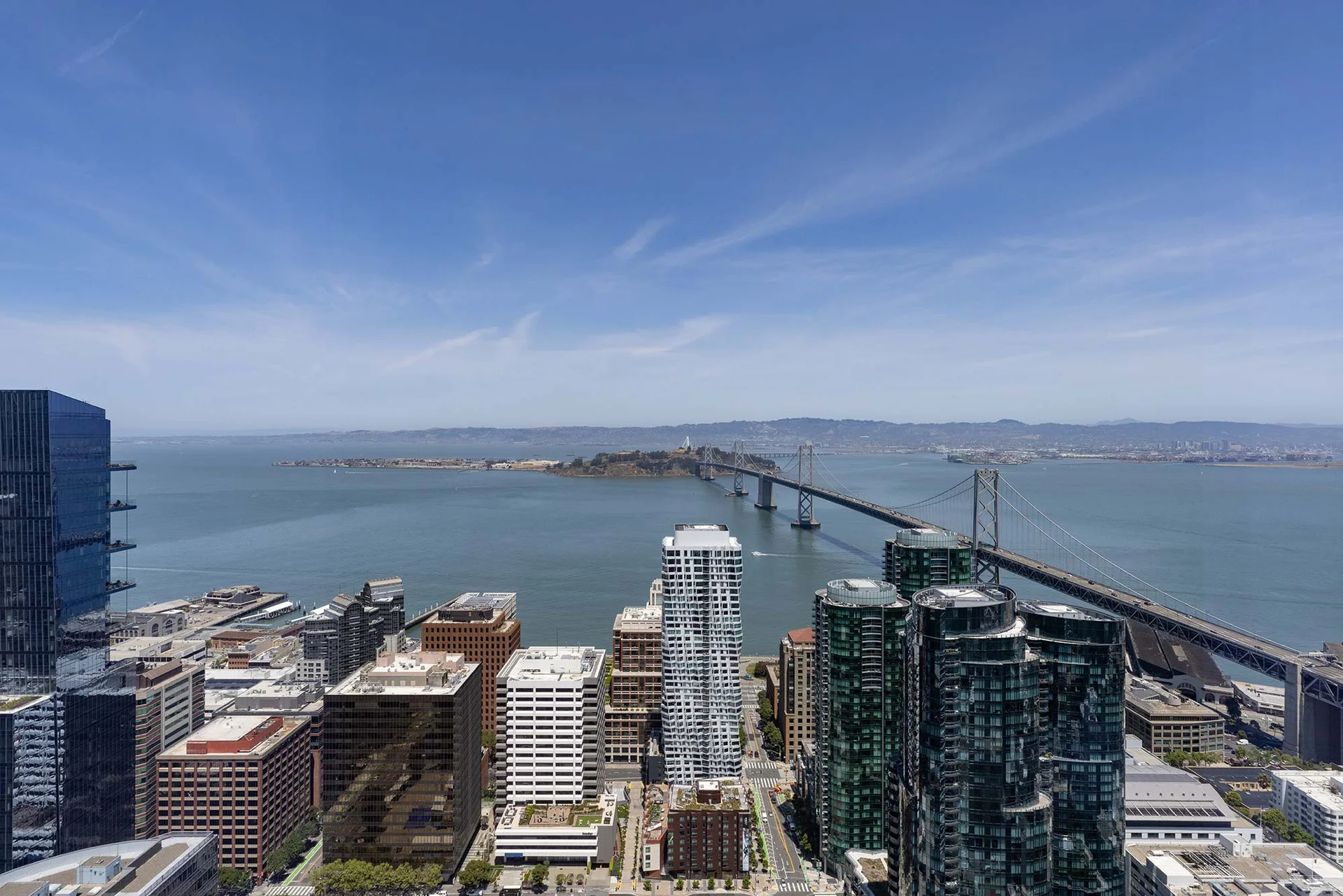 Floor-to-ceiling windows provide maximum natural light and showcase sweeping water and city views