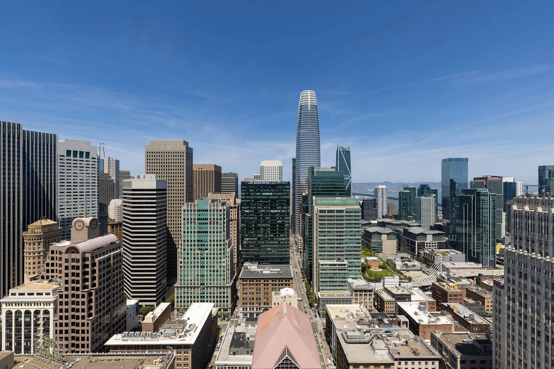 Oversized Corner 1 Bedroom, 1 Bath with Bay Bridge views towards Salesforce Tower featuring upgraded strip wood flooring, new hardware and an in-home washer/dryer, newly remodeled gourmet kitchen including a white quartz counter with a Calcutta marble backsplash, and panelized wood cabinetry with soft-close drawers and integrated premium Bosch appliances.