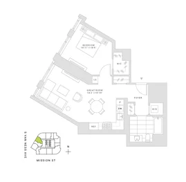 Fifteen Fifty San Francisco 1 Bedroom Floor Plan
