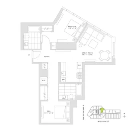 Fifteen Fifty San Francisco 1 Bedroom Floor Plan