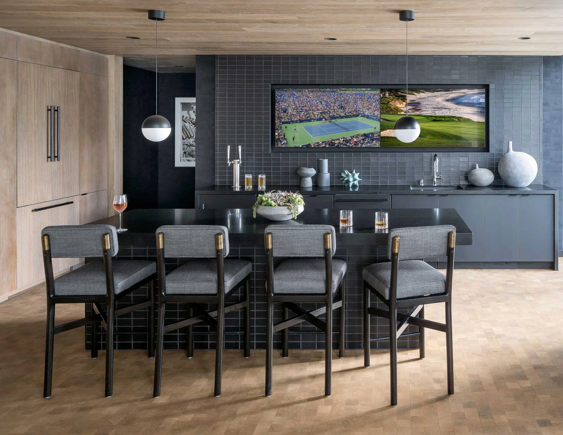Multiple big-screen monitors make the Sports Lounge an ideal venue for viewing everything from the Oscars to the Super Bowl, and also features a custom-designed pool table and a bar with a Kegerator.